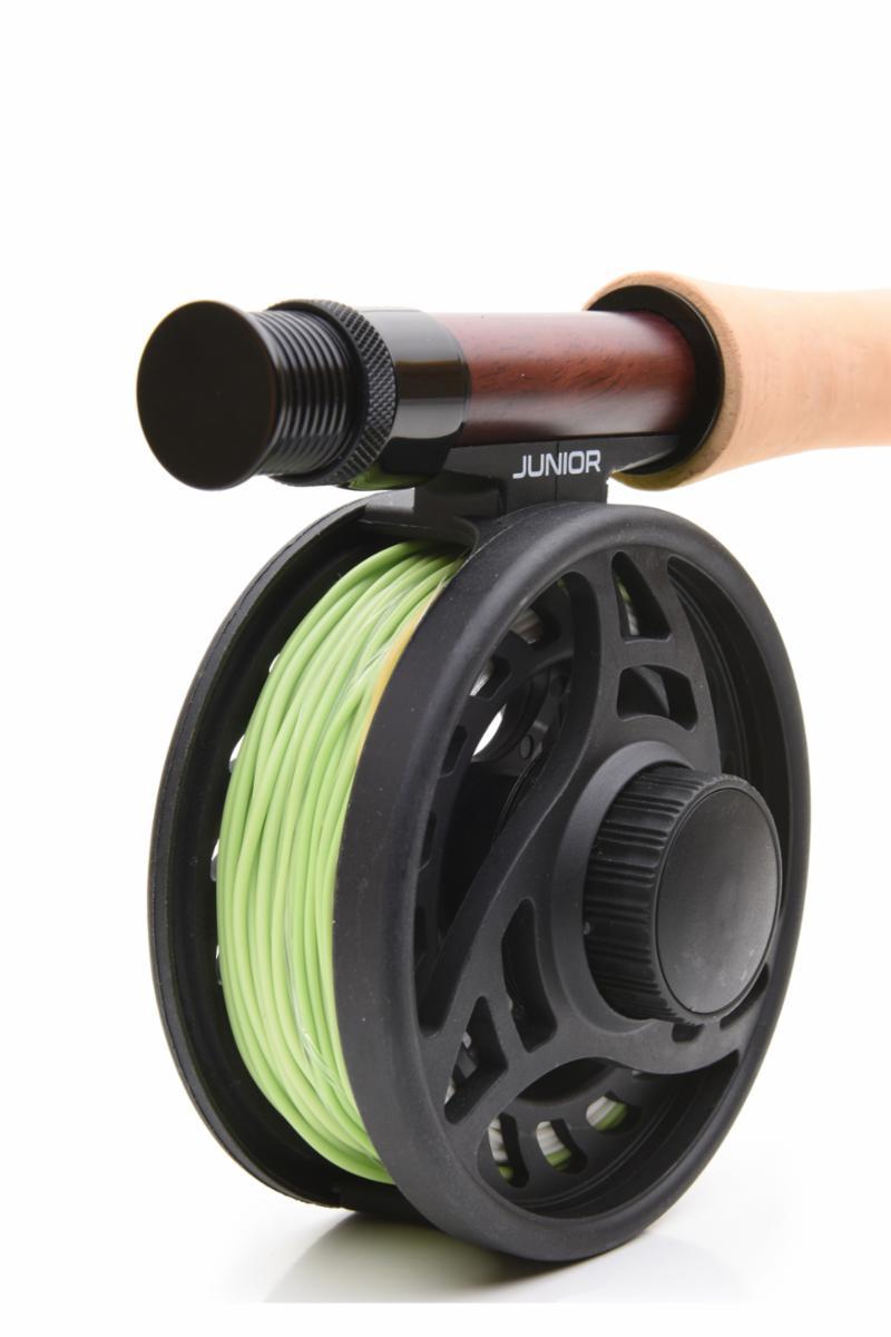Dette er stanga som er lettere å bruke for yngre barn. Stanglengde, aksjon og line er tilpasset mindre hender og litt mindre finmotorikk og kraftbruk, slik at det blir både morsomme og lettere for barn å få mestringsfølelse. Stanga er 7,6 fot i klasse 5/6 med en medium rask aksjon. Snøret er Vision Vibe 65 med en kort belly, slik at stanga belastes lett og på en måte som gjør at kasteren kjenner hva som skjer i kastet. Snella er en lett komposittsnelle i grafitt og har har en jevn og effektiv, fullt justerbar skivebrems. Dette settet er 4 delt for enkel transport og kommer i et beskyttende stangrør med plass til påmontert snelle. Egen erfaring har vist at dette spesiallagde settet gjør det både enklere og morsommere for barn å lære fluefiske.