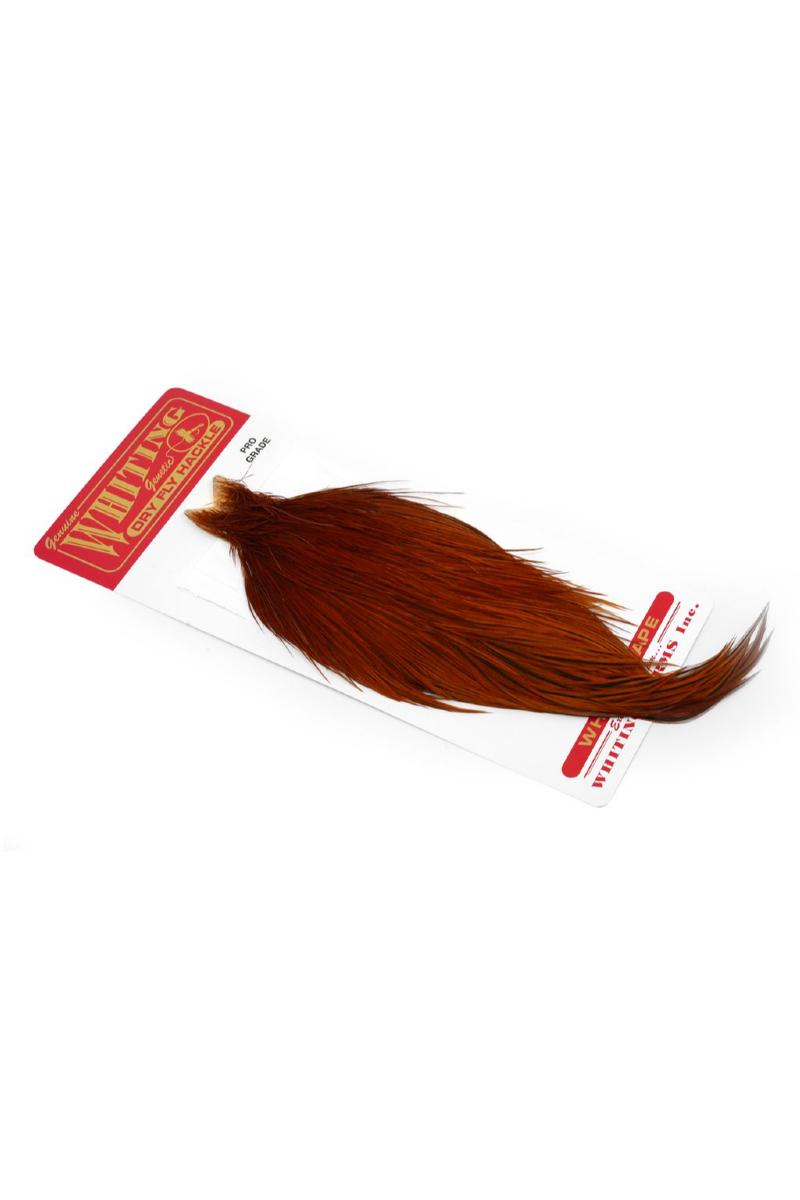Whiting produserer markedets fineste hacklekvaliteter til fluebinding. Disse nakkene er Hoffman-linjen som Dr. Whiting har jobbet med siden slutten av 80-tallet. Henry Hoffman utviklet denne avlslinjen, hovedsakelig med grizzly og hvite fugler. I dag er fargespekteret utvidet betraktelig. og kvaliteten forbedret til et nivå man kan undre seg over om er mulig å gjøre bedre.
