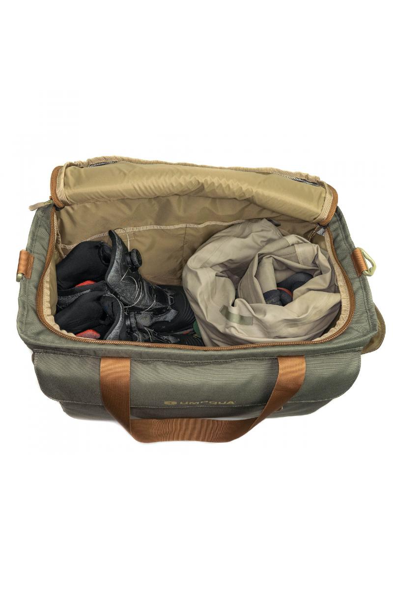 En lekker og funksjonell bag for oppbevaring av vadebukser og vadestøvler når du er på tur. Bagen har en utfellbar, vattert/polstret ståstasjon i full størrelse. Når denne ikke er i bruk og er rullet inn vil oppbevaringsplassen også kunne romme stangtuber og hov. Bagen har også en vannflaskelomme i mesh og et 2x4 Molle Panel - kompatibel med alt ZS2 tilbehør. Lokket har to meshpaneler for ventilasjon/tørking og 3 innvendige lommer. En skulderstropp gjør bæring av bagen komfortabel og et håndtak med borrelås gir også enkel bæring med hånda.