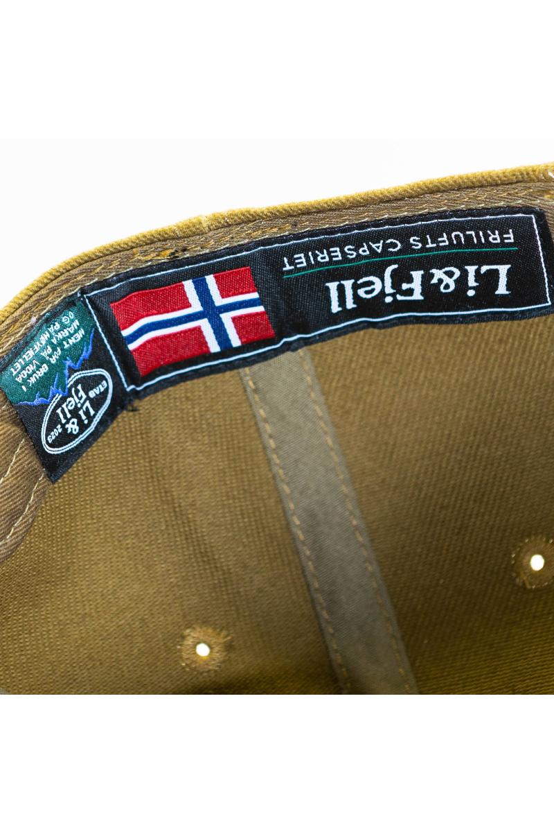 Li&Fjell sin helt egne Classic Low Profile cap med montert vevet patch i front. En klassisk caps med lav profil og meget god passform. Dette er en robust caps i grovt vevet 100% bommullstwill. Kommer i en spennende brun/grønn farge med detaljer i grønn, rød og hvit.