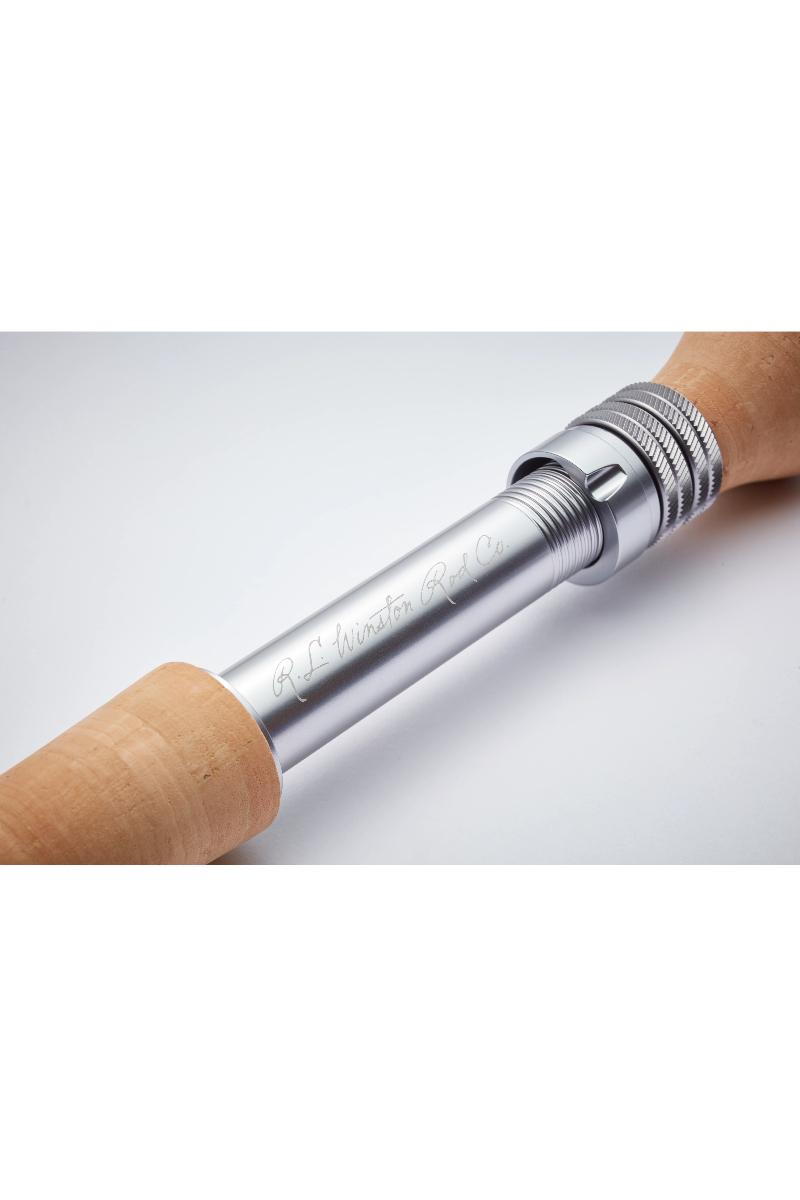 SNELLEFESTE: Sølv, lett anodisert aluminium. Endebutt gravert med R.L. Winston Script-logo. Doble, uplock aluminiumsringer. 1 ½" Fighting Butt