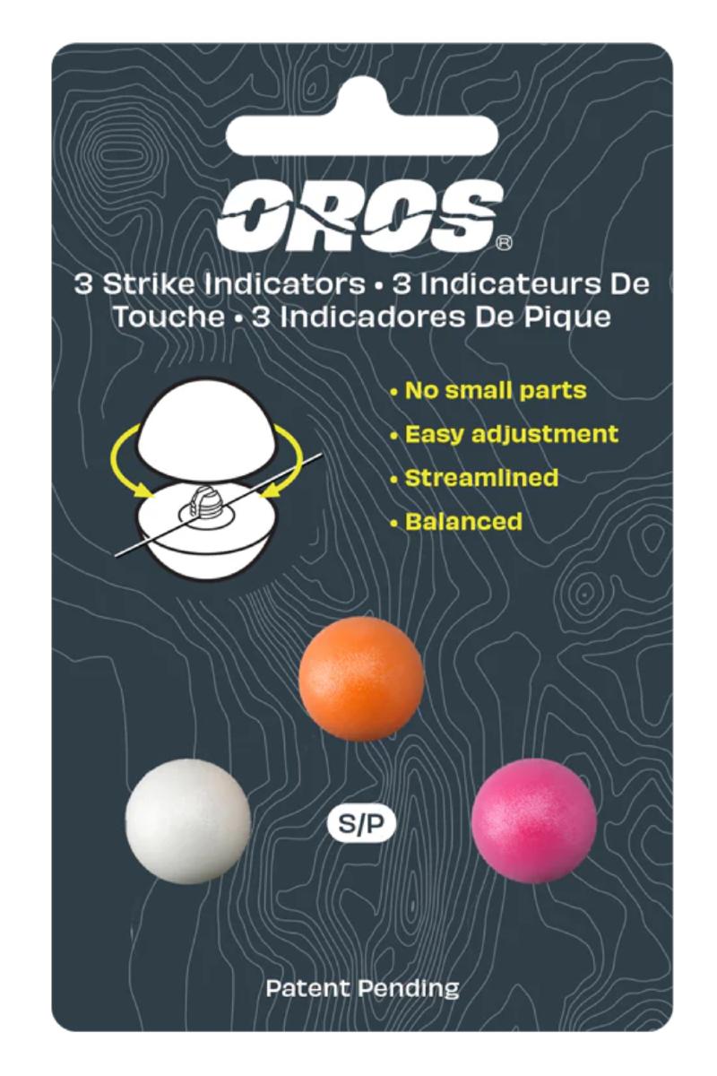 Vi synes denne nye indikatoren fra Oros er en av de mest geniale vi har sett. Den er laget av to støpte foamdeler som henger sammen med en skruing. Den skrus enkelt fra hverandre og festes ved å legge fortommen i midten i skruespalten og skru indikatoren sammen. Det er ingen små deler å miste. Du kan blande og matche fargene om ønskelig. Den glir ikke på fortommen og den er enkel å flytte ved behov. Det er bare å skru løs 1⁄4 omdreining for å justere opp eller ned. Den lager heller ikke spor på fortommen. Overflaten er glatt for å avvise vann og smuss, og skaper mindre luftmotstand under kasting.