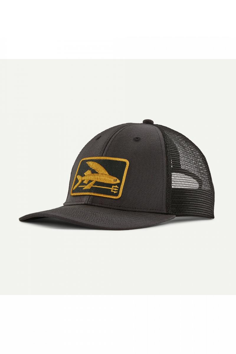 Flying Fish LoPro Trucker-capsen har en brem laget av 100 % resirkulerte fiskegarn. Den er tettsittende med en lav krone. Fronten er i økologisk bomull og baksiden i resirkulert polyesternett. Justerbar trykknapplukking bak.
