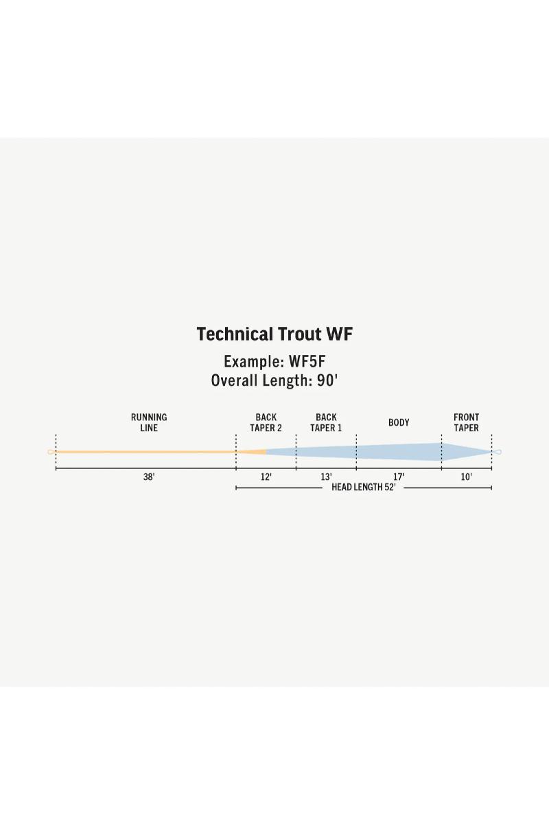 RIOs Premier versjon av Technical Trout, med en ordinær kjerne med strekk, i motsetning til Elite- utgaven som har en strekkfri kjerne. Rios Technical Trout er en WF flyteline med en lang belly/vektdel og med lang front- og baktaper. Dette gjør lina til et ideellt valg for et fiske der delikate presentasjoner er en betingelse for å komme i kontakt med fisken og der du må være i stand til lange kast for å nå vakene. Den lange baktaperen gir svært god kontroll på lengdekastene og vektfordelingen i front bidrar til å vende over lange fortommer. Med sin ca. 15,8 meter lange belly (WF5) er dette, som også navnet sier, en line for det tekniske fisket og den mer erfarne fluekasteren.