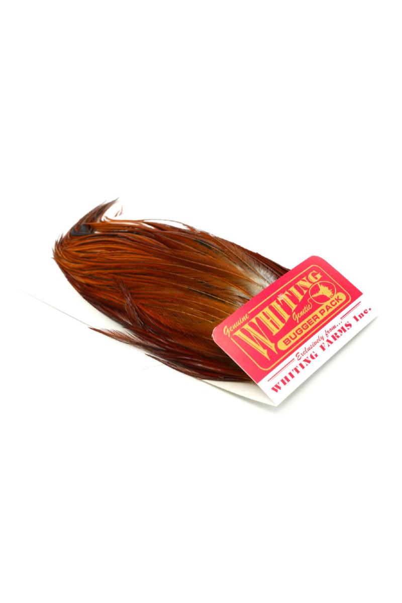 Whiting Farms Bugger Packs inneholder biter fra ulike deler av en nakke, noe som gir stor variasjon i fjær og fiberlengder. Fjærene har lange, jevnt avsmalnende fibre på en myk midtstamme. Fjærene varierer fra korte til lange fibre, noe som gjør det mulig å binde streamere og nymfer i forskjellige størrelser – pakken er ikke begrenset til bare én spesifikk størrelse. I tillegg er fjærstammen ekstremt fleksibel og slitesterk, noe som sikrer at det er enkelt å binde og at flua blir holdbar. I tillegg til fjær for streamere og nymfer vil du i Bugger Packs finne fiberlengder som egner seg til store tørrfluer, og til kroppshackle på tubefluer.