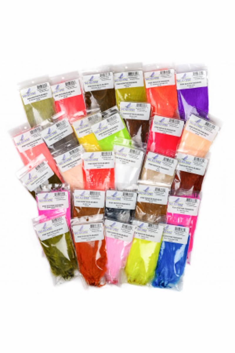 Nature`s Spirit har et ubestridt rykte som en av de beste leverandørene av naturmaterialer til fluebinding. Mange års erfaring som profesjonelle fluebindere, gjør at de velger ut, behandler og graderer materialer som tilfredsstiller den mest kresne fluebinder. Når Chris binder streamere er Fish Hunter Marabou fra Nature`s spirit en favoritt. Fluffy fjær, høy fibertetthet og uovertruffen fargepalett med klare farger.