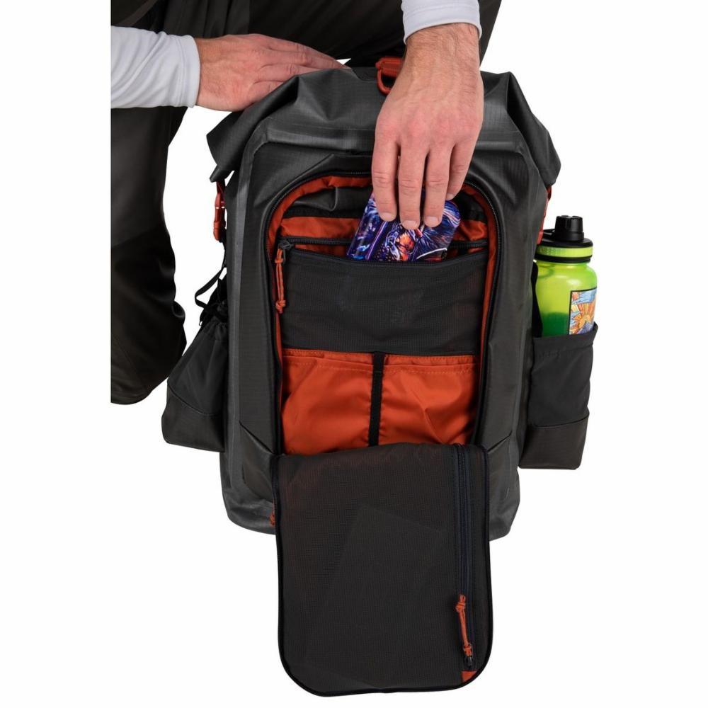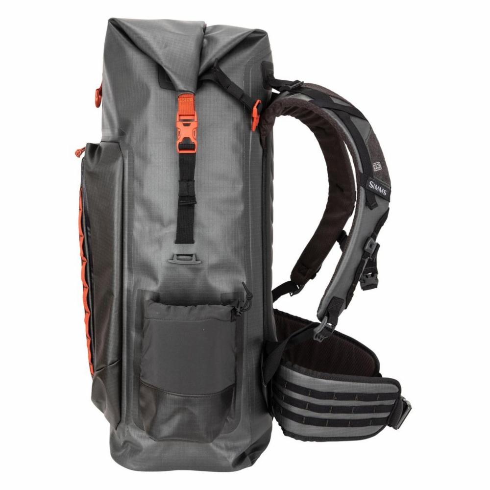 G3 Guide er en vanntett ryggsekk med rolltop lukking, laget i et meget sterkt stoff og med en noe større kapasitet enn Simms sine andre ryggsekker. Har du mye utstyr du vil ta med og trenger en fullstendig vanntett oppbevaring er denne sekken svaret. Om du ikke akkurat kan gå i krigen med denne sekken er den ikke langt unna. Helheten er supersolid og sekken er spekket med gjennomtenkte detaljer: