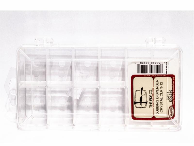 Gjennomsiktig dispenser med 12 rom og hull for hver farge for presist uttrekk av dubbingmengde uten å blande fargene.