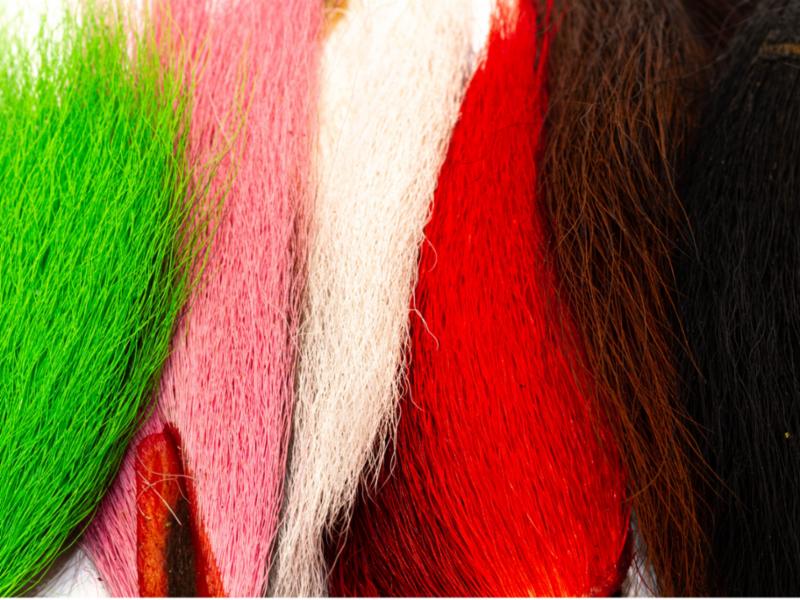 En pakke inneholder biter av bucktail i seks av de mest populære fargene.
