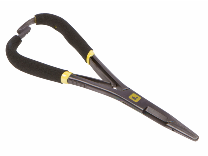 Designet for bruk med votter eller tykke hansker, men like praktisk for nakne fingre. Laget av kirurgisk stål av høyeste kvalitet. Klemmene åpnes og lukkes med samme klembevegelse, noe som gjør det ekstra praktisk å feste den til en pack eller vest.