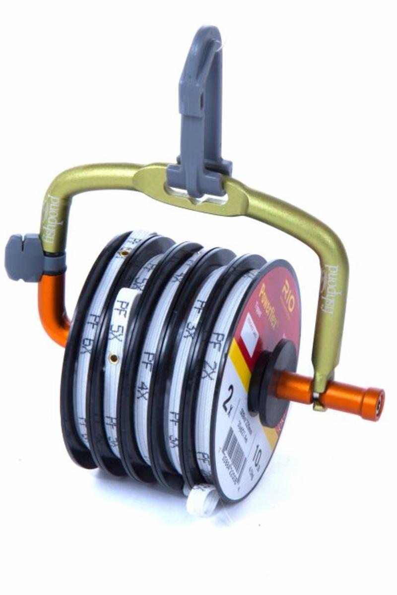 Smart og funksjonell oppbevaring av spissmateriale. Et fjærbelastet hengsledesign gjør det enkelt å legge til eller fjerne spoler. Headgate har også et innebygd skjæreblad for umiddelbar kutting.