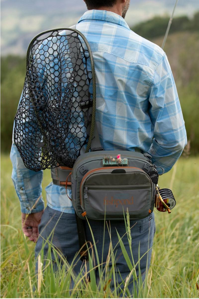 La deg ikke skremme av navnet, dette produktet er rett og slett en gjenoppfinnelse av funksjonaliteten i et vadebelte, bygd ut med funksjoner til et komplett og taktisk bæresystem du kan skreddersy til dine behov. Det har et støpt hylster for hovfeste, justerbar skulderstropp med verktøy- og fluefester og en helt uavhengig pakning på fem liter med funksjonelle inndelinger, som enkelt sklir langs belte for plassering der du til enhverer tid vil ha den: på ryggen når den ikke er i bruk og i front ved behov. Fishpond Switch Back Pro Wading System er en perfekt løsning for et bredt spekter av fluefiskesettinger. Koblet med f.eks. Fishpond Quikshot Rod Holder, Thunderhead Submersible Pouch eller en hel rekke andre tillegg etter eget ønske, er den nye Switchback Pro det mest funksjonelle og tilpasningsvennlige bæresystemet du kan tenke deg.