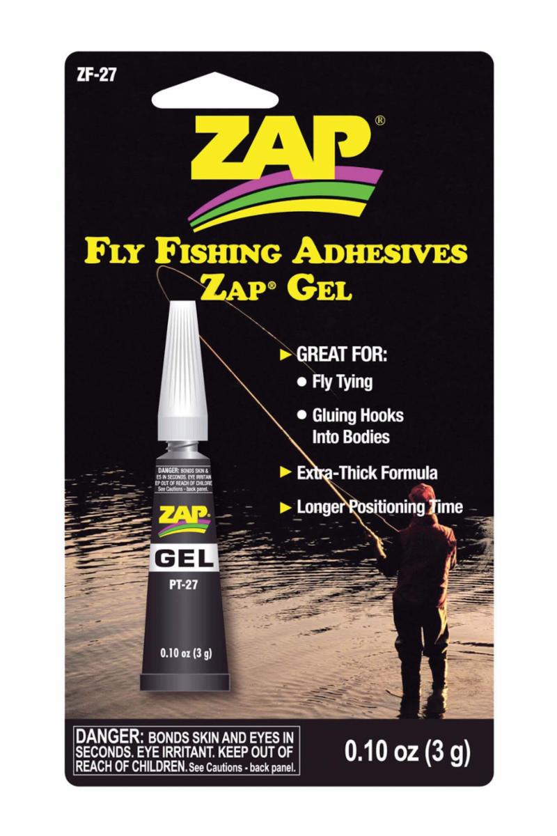 Zap a Gap Gel er litt tykkere superlim og har en noe lengre herdingstid. Veldig godt egnet for fluebinding, for eksempel for å feste forskjellige kropper som skum og lignende materialer til kroker, samt lime øyne på hodet.