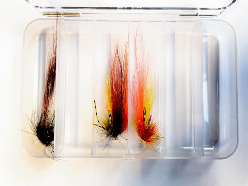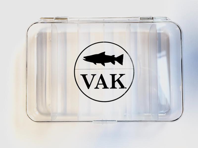 Vak logo tubeboks med seks rom i klar og solid polykarbonat. Boksene er gjennomsiktig så du lett finner frem til neste flue som skal settes på fortommen. Passer tubefluer opp til 11 cm.