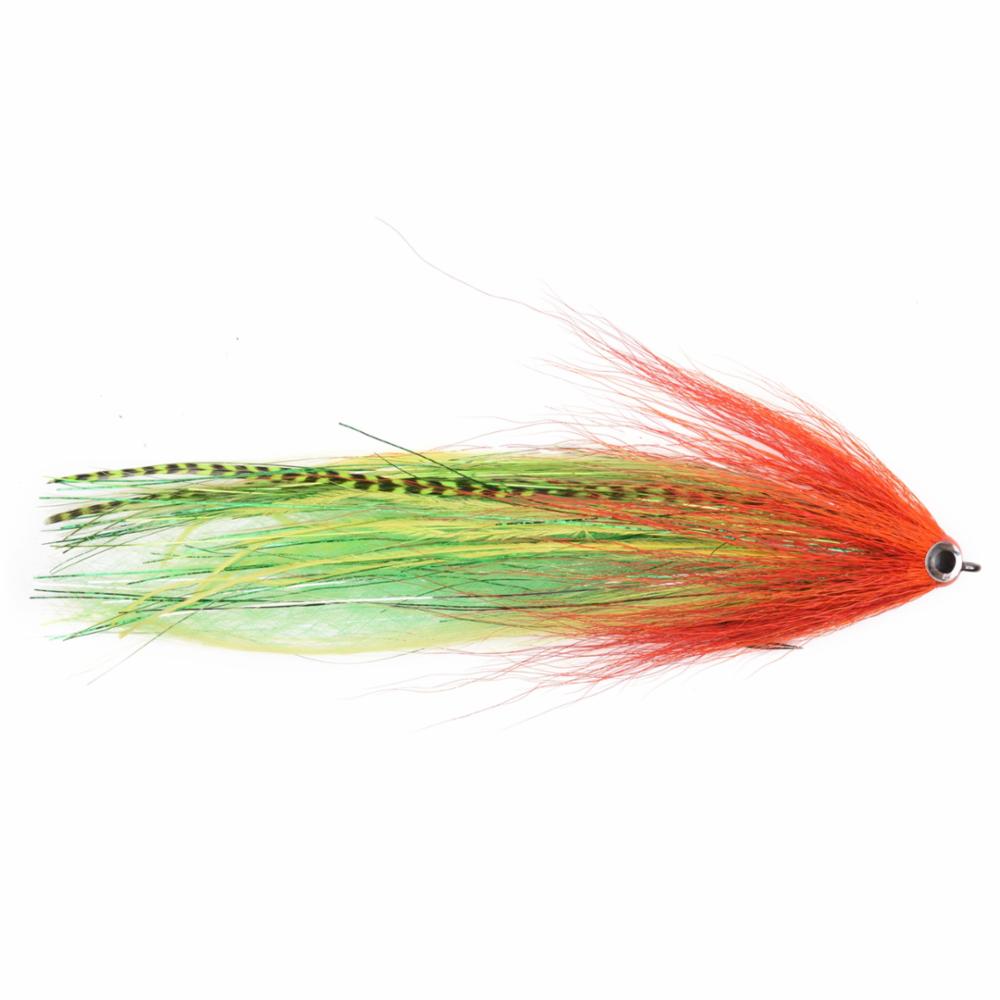 Parrot is one of the pike angler's most important fly colours, along with Ambulance. Especially in coloured water, it's all about making the fly visible and standing out. In this case, a cocktail of three eye-catching colours can save the trip! Tied on a 6/0 Partridge Universal Predator X pike fly hook.