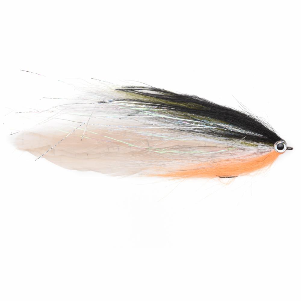 The natural bait fish coloured pattern is the most obvious fly option in the pike fly box. Silvery roach are part of the pike's basic diet practically everywhere. A roach-type natural colour is a good choice as a starting fly, especially if the water is clear. Tied on a 6/0 Partridge Universal Predator X hook.