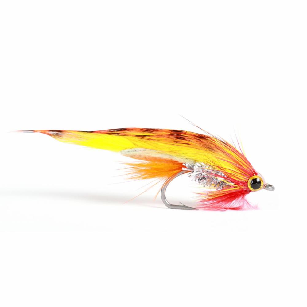 Zonker flue som er vår tolkning av den populære streameren Mickey Finn, vi har designet denne til bruk i sjøen og den er bundet på rustfri krok. Men det er ikke noe i veien for å bruke denne i ferskvann heller! Mickey Finn er en svært populær flue for nærmest allslags fiske: Ørret, Sjøørret, Laks, Abbor, Gjedde, egentlig det meste. Uansett, vi liker å bruke denne flua i sjøen etter sjøørret når den liker litt fargesterke fluer. Vi synes den fisker best i litt grumsete vann.