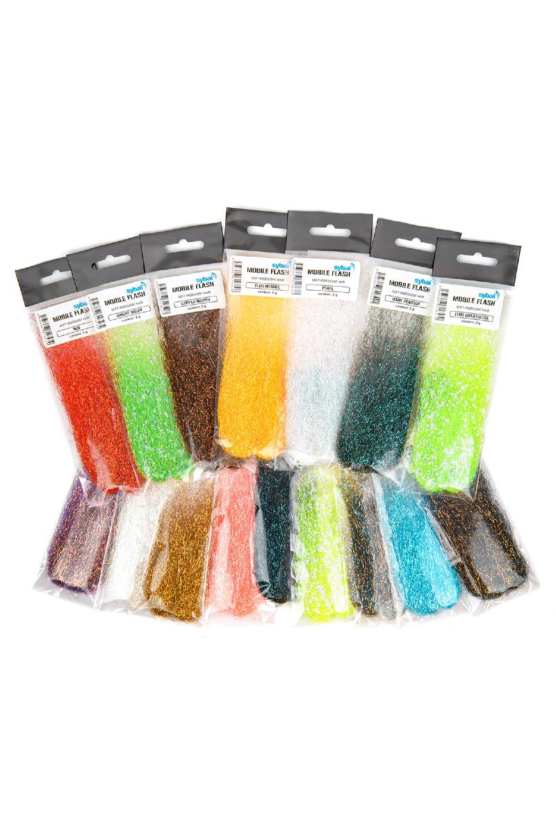 Very fine Mylar® synthetic hair with 6″ strands that is packaged in hanks. It doesn’t absorb water, so large flies don’t get heavier. Soft, highly mobile with a pulsating action, more than other hair products. Bigger volume due to their fine corrugation. Excellent material for wings, tails and bodies. Adds lots of sparkle and glitter to any fly!