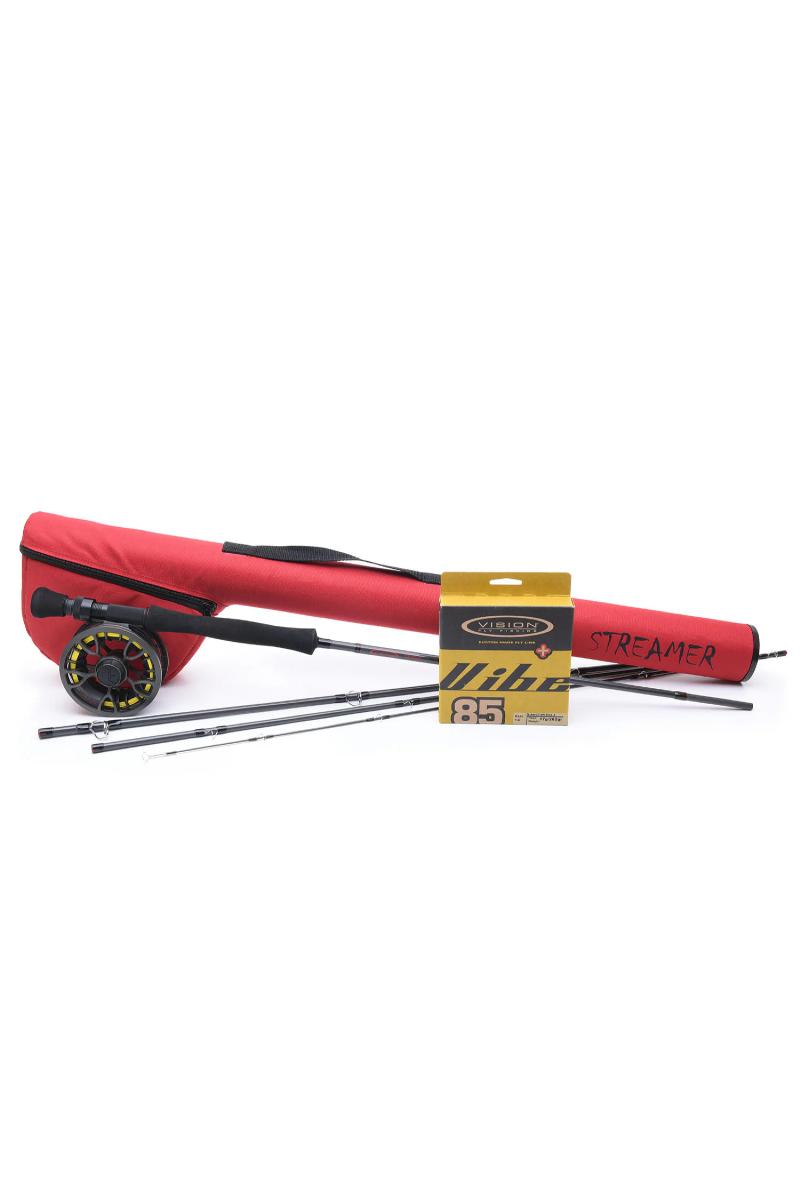 Streamerfiske har vokst deg til å bli en egen genre innen fluefiske, med en rivende utvikling av både fluer, utstyr og teknikker, bare det siste tiåret. Spesialisert fiske krever spesialisert utstyr men terskelen kan bli litt høy om det nye blir et tilleggesutstyr til et allerede kostbart og kjært fluefiskeutatyr. Alt dette har Vision forlengst skjønt og laget pakkeløsninger til en kvalitet som ivaretar spaialiseringen og det tul en overkommelig penge. Vision Streamer outfit er et spesiallaget sett for streamerfsike med synkeline. Det egner seg like godt til elvefiske etter ørret som til storabborfiske i stillevann. Den 4-delte Streamer-stangen har en medium rask aksjon med et uslipt blanks og svart EVA-foamhåndtak. Snella er en Hero-snelle i egendefinert farge spesielt laget for dette sttet (selges ikke separat). Streamer-settet inkluderer Visions bestselgende premium flueline, Vibe 85+. Vibe 85+ fluesnøre har et 8,5 m langt Sink3-hode og en flytende skyteline. Total lengde er 27m. Dette bruksklare settet inkluderer også 20lb backing og 9 fots fortom. Det er et fullblods streamer-sett pakket i en beskyttende cordura-tube med en snellepose.