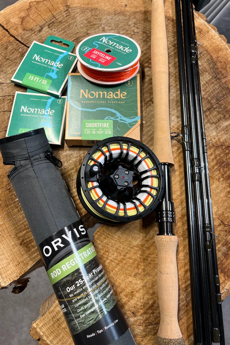 Laksesett satt sammen av stang og snelle som hver for seg er kvalitetsprodukter og representerer det absolutt beste i sitt prissegment. Sammen med vekt- og lengde- tilpasset Nomade Shortfire klump, to synkespisser, Nomade skyteline og backing er dette et sett som både gjør det enklere å lære seg tohåndskasting og som gjør deg fullt operativ som laksefisker med flue under ulike forhold. Settet er et allroundsett som dekker laksefiske i de fleste elver, med unntak av de små. Med flytklump som basis og to synkespisser, får du en variasjon i avfiskingen av flua som dekker de vanligste forhold med sommerelv. Flytklumpen er også det desidert beste linevalget når du skal lære tohåndskasting. Lengden på klumpen er også valgt ut med tanke på å gjøre tohåndskastingen med moderate kasteferdigheter enklest mulig og læreprossesen ved tohåndskastingen mest mulig håndterlig uten å forenkle bort vesentlige tekniske nødvendigheter. Aksjonen på stanga er både kaste- og fiskevennlig. Den gir deg god linekontakt, er tilgivende i krav til timing og presisjon og har kraft nok til både lange kast og til å temme storlaks. Snella har solid brems og rikelig kapasitet for harde utras og en hel ramme slik at skytelina ikke kan kile seg.