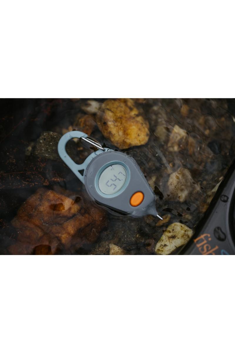 Riverkeeper er det perfekte verktøyet for å ta nøyaktige temperaturavlesninger. Termometeret er det eneste IPX7 nedsenkbare digitale termometeret designet av og for fluefiskere. Laget med et robust ytre, en stor UV-filtrert skjerm, et utskiftbart batteri og en slitesterk aluminiumssonde. For å slå termometeret på eller av, hold nede knappen i 2 sekunder. Termometeret slås automatisk av etter 3 minutter uten aktivitet. For å bytte mellom °F og °C, trykk raskt på knappen tre ganger Senk termometeret i vann og vent til temperaturen har stabilisert seg.