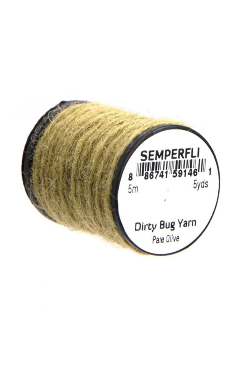 Bug Yarn er en blanding av naturlige og syntetiske materialer i garnform. Det gir fluekropper med innslag av flere farger samtidig, i et svært livaktig helhetsuttrykk. Kan legges som tørn rundt krokskaftet eller tvinnes og legges som forlenget kropp. Mange vil anse Pale Olive som en perfekt kroppsfarge på vulgataimitasjoner