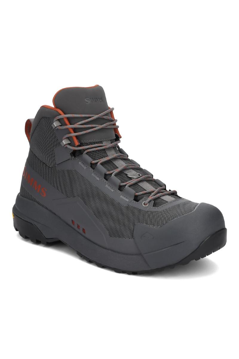 Simms Flyweight har vært førstevalget til fluefiskeren som beveger seg mye i fisket sitt- der både vekt, slitasjestyrke, og bevegelseskomfort betyr mye, samtidig som man vil ha en sko som griper godt og er stødig i fiskesituasjonen. Den nye Simms Flyweight er en oppgradering på alle disse områdene. Den kan minne om en tursko men har all gode egenskaper vi ønsker oss som fiskere. En oppgradering av materialvalg i overdel gir enda bedre slitestyrke når du beveger deg gjennom terreng og materialet er fleksibelt nok til at skoen er behagelig å gå i. Skoen er i tillegg forsterket med slitasjebestandige beskyttelsespaneler. En EVA- mellomsåle med dobbel tetthet gir komfort og stabilitet både under fiske og vandring. Gummisålen gir perfekt grep enten du står i vannet eller beveger deg i terrenget. En forsterket tåhette vil beskytte skoen når du går gjennom kratt eller sparker borti stein i elv eller vann og dreneringsporter sørger for at vann ikke samler seg i skoen.