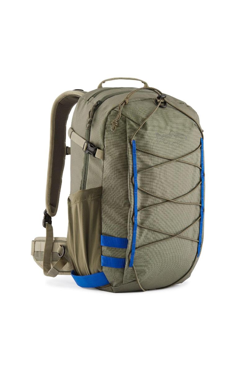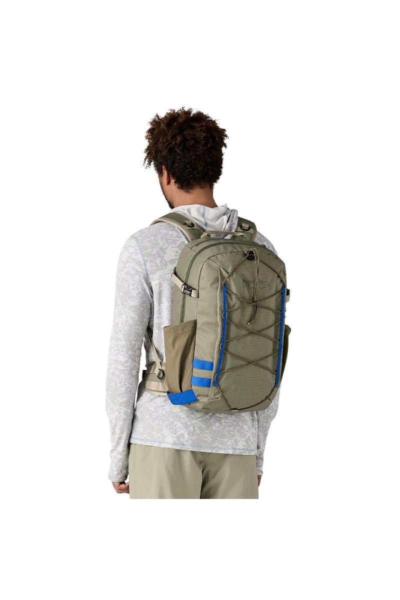 - Sekkorganisering inkluderer en topplomme for tilbehør, en hovedlomme, en liten frontlomme for praktiske ting og en strikksnor for å feste utstyr til sekken eller holde våte vadere adskilt.