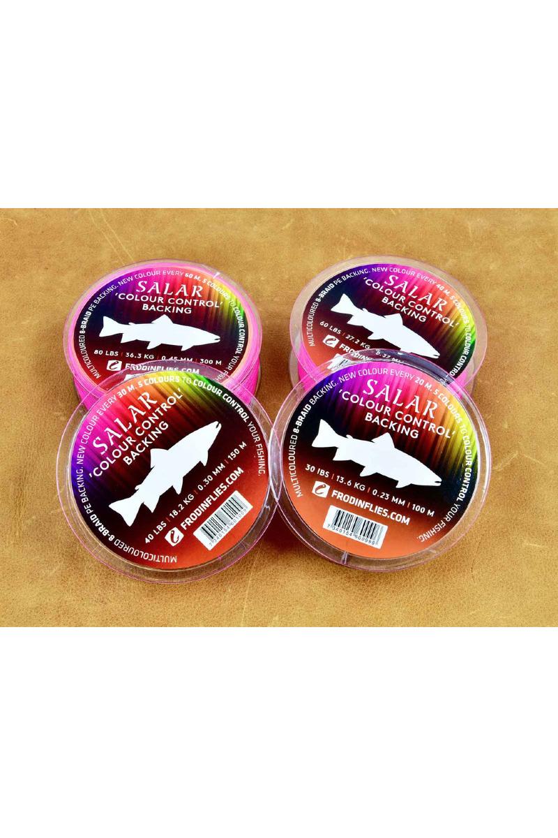 For ganske mange år siden kom Mikael på ideen om en flerfarget backing som ville gjøre det mulig å spore hvor mye line som forlater snellen din under en laksefight. SALAR flerfargede backing er annerledes enn andre backinger, detn gir deg enda mer kontroll! Baksidenckingen endrer farge fem ganger på hver spole, og viser hver farge bare én gang, for ikke å forveksle. Den gir deg mulighet til å kjempe mot selv den største fisken med full kontroll.