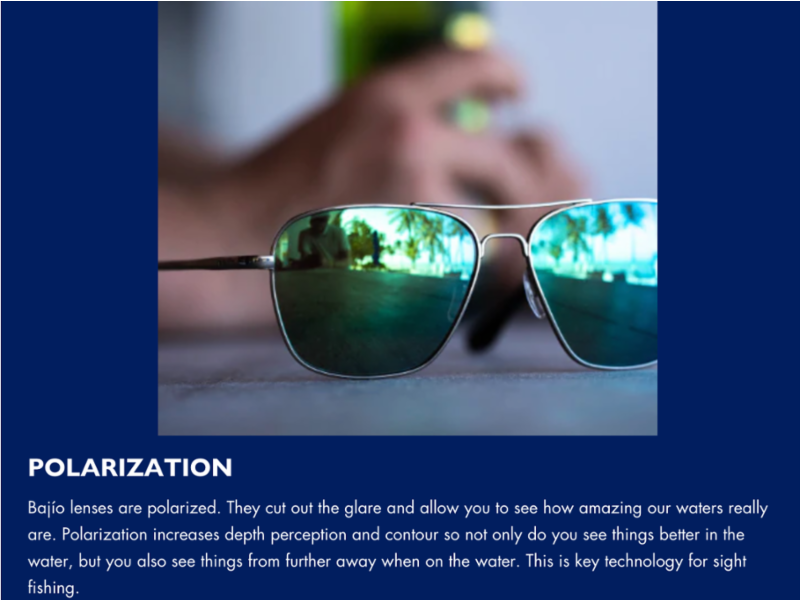 Bajio Caballo har ekstra stor innfatning, laget med slitesterk, biobasert nylon for å tåle mange års tung bruk. Kontaktpunkter på nese og stenge rer bøyelige og gripende og holder brillene komfortabelt på plass. Bajíos polariserte, fargeforsterkende, høyoppløselige linser reduserer øyetrettende blått lys. Caballo er egnet for middels til store ansikter .