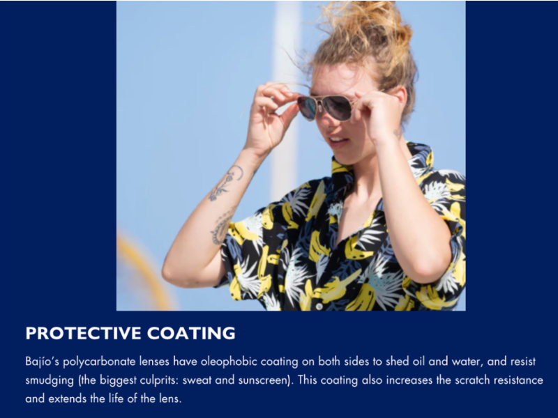 - Linsebelegg: Ripebestandige og fingeravtrykksavvisende belegg beskytter linsene og gjør de lettere å rengjøre for salt, svette og solkrem