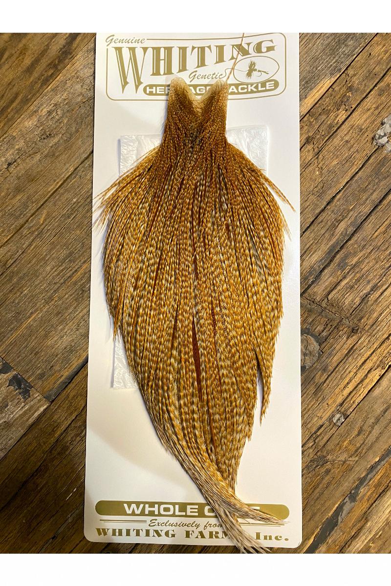 Med serien av Heritage nakker forvalter Whiting arven fra pionerene i hackleavling på en særdeles god måte. Fargeutvalget er i mindre grad strømlinjeformet enn ved Whitings ordinære utvalg, alle er i magfoldige og levende naturlige fgargetoner og du vil finne nyanser og variasjoner som gjør nesten hver nakke unik. Samtidig er kvaliteten Whiting er så kjent for også avlet inn i disse nakkene, slik at hver fjær har akkurat den kvaliteten vi ønsker på en tørrflue. Heritagenakker har et rikt utvalg av fjærstørrelser på hver nakke, men du finner relativt sett en større mengde #10 til #14, enn på andre Whiting-nakker.